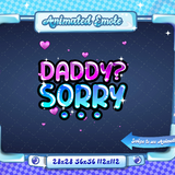 Animated + Static Daddy Sorry V1 Twitch Emote. All emotes come in animated and static versions with sizes 112x112, 56x56, and 28x28.